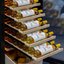 Полки в винных шкафах позволяют размещать бутылки для хранения в горизонтальном положении. Это необходимо, чтобы пробка постоянно смачивалась жидкостью и не пересыхала. Плотно закрытая пробка гарантирует, что внутрь бутылки не проникнет наружный воздух. Кислород, содержащийся в воздухе, может стать причиной ухудшения вкуса вина и даже его скисания. Кроме того, горизонтальное положение позволяет лучше оценить количество осадка. Материал изготовления полок выбирается, исходя из требований, предъявляемых к содержанию коллекции вин. Одним из основных требования является отсутствие или максимальное сокращение вибрации и хорошая фиксация бутылок на месте хранения. Даже если полка выдвигается, бутылки должны оставаться на своем месте. Второе требование исключает применение стеклянных полок, как в обычном холодильнике: на них почти невозможно зафиксировать бутылки.