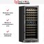 Винный шкаф Meyvel MV116-KST2 — вместительная модель от известного производителя бытовой техники. Отдельностоящий прибор можно легко разместить в любом интерьере, а при необходимости и встроить в нишу. Корпус изготовлен из качественной стали, которая препятствует образованию коррозии. Наличие угольного фильтра обеспечивает защиту напиткам от посторонних запахов, которые могут попасть внутрь бутылки через пробку. Внутри 11 деревянных полочек. Они легко выдвигаются, поэтому загрузка и выгрузка происходит с дополнительным комфортом. Сенсорное управление отличается простотой настройки за счет малого количества кнопок и графических подсказок. Освещение в винном шкафу Мейвел MV116-KST2 представлено светодиодной подсветкой, которая не только является экономичным вариантом, но и безопасным, так как не нагревается во время работы.