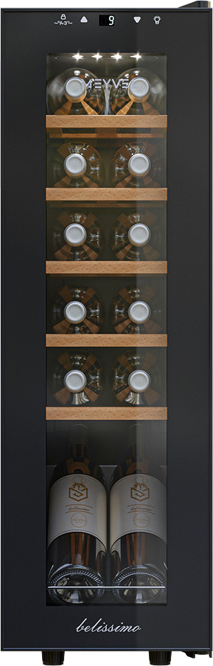 Винный холодильник Meyvel MV12-CBF1 имеет одну температурную зону, в которой можно разместить бутылки и единовременно выставить только одну комбинацию настроек. Он устанавливается отдельно, что удобно, если у вас есть специальное помещение — кладовая, погреб и т.д. Благодаря компактным размерам данная модель — отличный выбор для офиса, гостиничного номера. Количество бутылок, которое можно разместить с учетом полной комплектации и из расчета объема бутылки 0,75 л, — 12 шт.