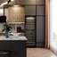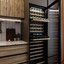 Встраиваемые холодильники для вина оснащаются специальной системой вентиляции: охлаждающая система у них находится в нижней части корпуса спереди. На такие устройства не навешивается мебельный фасад: дверца с затемненным стеклом остается на виду и открывается на достаточно широкий угол для свободного выдвижения деревянных полок.