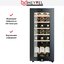 Стеклянная дверь — дополнительный изящный штрих к общему дизайну модели. Специальное покрытие защищает вино от влияния ультрафиолетовых лучей, которые проникают, если шкаф находится в солнечной комнате. Хранение становится еще безопаснее и герметичнее благодаря нескольким слоям стекол. Цвет корпуса — черный.