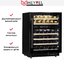 Винный шкаф Meyvel MV46PRO-KBT2 предназначен для правильного хранения напитков. Он поддерживает оптимальные условия по температуре и влажности, чтобы сохранить все вкусовые качества вина. Устройство имеет компактные размеры, при этом вмещает до 46 бутылок, что является хорошим показателем. Черный цвет корпуса — универсальное решение, которое подойдет для большинства интерьеров. Через стеклянную дверцу удобно обозревать содержимое, а внутренняя подсветка дополняет комфорт при эксплуатации. Настройка параметров работы происходит с сенсорной панели управления. Она отличается простотой для понимания и быстрой реакцией на нажатия. Деревянные полочки смотрятся стильно и эстетично. Они легко выдвигаются для удобной загрузки и выгрузки. Винный шкаф Мейвел MV46PRO-KBT2 можно встроить под столешницу.