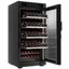Стеклянная дверь — дополнительный изящный штрих к общему дизайну модели. Специальное покрытие защищает вино от влияния ультрафиолетовых лучей, которые проникают, если шкаф находится в солнечной комнате. Хранение становится еще безопаснее и герметичнее благодаря нескольким слоям стекол. Цвет корпуса — черный.