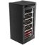 Электронное управление помогает быстро разобраться в том, как функционирует эта модель, и легко настроить все необходимые параметры. На дисплее отображаются данные, которые собирают датчики в камере. Лампочки, расположенные внутри, хорошо подсвечивают бутылки. Всего полок, на которых можно разместить коллекцию, в шкафу 8 шт.