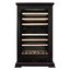 Стеклянная дверь — дополнительный изящный штрих к общему дизайну модели. Специальное покрытие защищает вино от влияния ультрафиолетовых лучей, которые проникают, если шкаф находится в солнечной комнате. Хранение становится еще безопаснее и герметичнее благодаря нескольким слоям стекол. Цвет корпуса — темный шоколад.