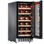 Современные винные шкафы всех типов, в том числе компрессорные, темоэлектрические и абсорбционные, оснащаются электронной системой управления — кнопочной или сенсорной. Панель управления, с помощью которой производится регулировка параметров работы, может размещаться внутри винного шкафа за дверцей или снаружи в верхней части корпуса. Второй вариант более удобен, поскольку для изменения параметров не нужно открывать дверцу. Кроме того, такое расположение панели управления позволяет поддерживать более стабильную температуру в камере. Однако для больших винных шкафов в классическом стиле из ценных пород дерева предпочтительнее скрытая панель управления, которая не портит их внешний вид.