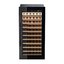 Производители предлагают винные шкафы, оснащенные одной, двумя, тремя и четырьмя камерами, которые могут располагаться как друг под другом, так бок и бок. Самые популярные — однокамерные модели, ассортимент которых особенно широк, но втором месте — двухкамерные. Над заметить, что количество камер не зависит напрямую от габаритов изделия: например, однокамерные модели увеличенных габаритов — далеко не редкость. Их высота может варьироваться в пределах от 14 см до 219 см, а ширина — от 13 см до 150 см.