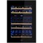 Стеклянная дверь — дополнительный изящный штрих к общему дизайну модели. Специальное покрытие защищает вино от влияния ультрафиолетовых лучей, которые проникают, если шкаф находится в солнечной комнате. Хранение становится еще безопаснее и герметичнее благодаря нескольким слоям стекол. Цвет корпуса — черное стекло. Доводчик делает открытие и закрытие плавным.