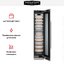 Электронное управление помогает быстро разобраться в том, как функционирует эта модель, и легко настроить все необходимые параметры. На дисплее отображаются данные, которые собирают датчики в камере. Лампочки, расположенные внутри, хорошо подсвечивают бутылки. Всего полок, на которых можно разместить коллекцию, в шкафу 10 шт.