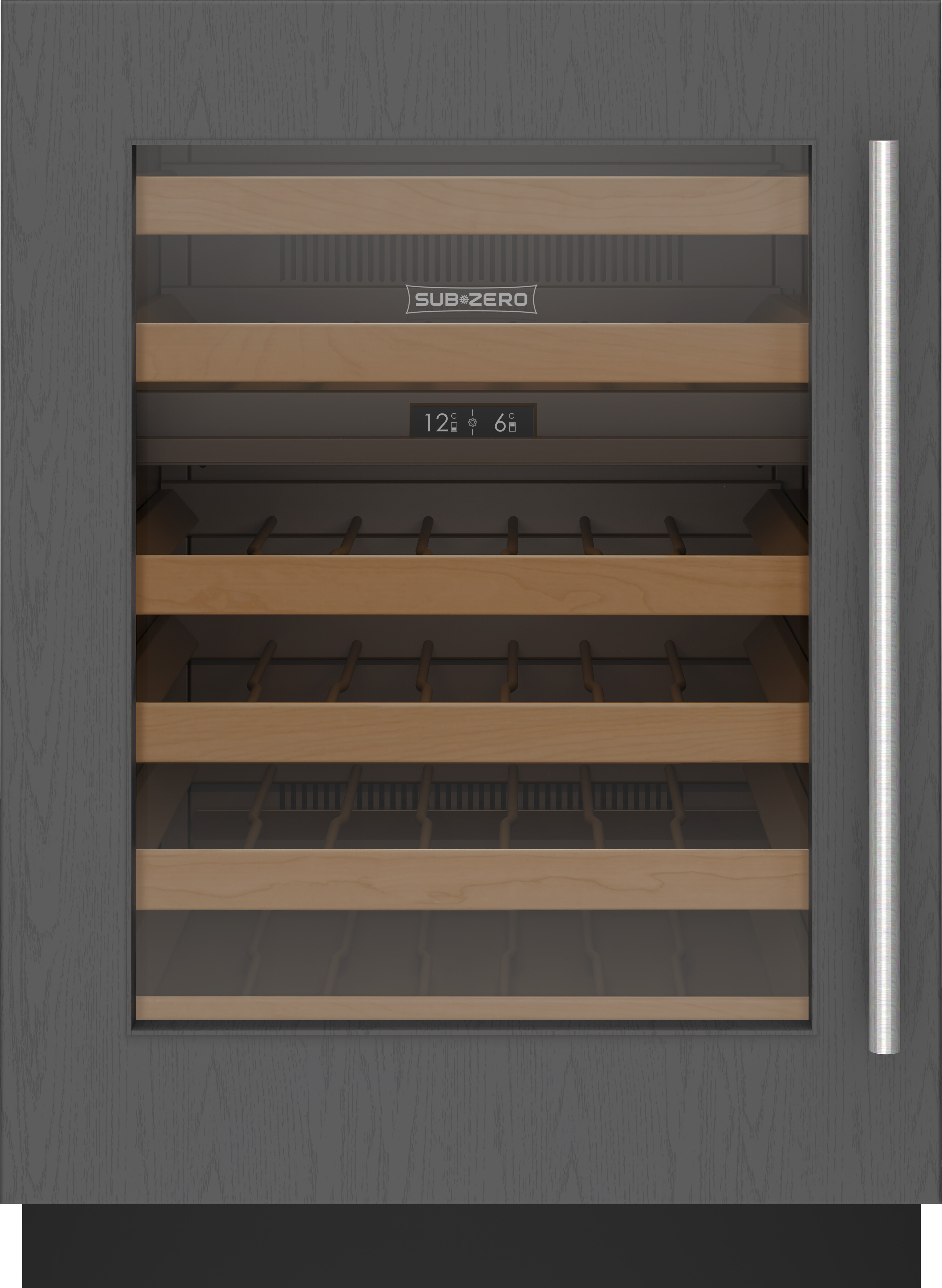 Винный холодильник SUB-ZERO ICBDEU2450W/L имеет две температурные зоны, в которых одновременно можно хранить разные сорта алкоголя и выставлять разные сочетания настроек. Он встраивается в нишу, что удобно, если у вас ограничен метраж помещения. Благодаря компактным размерам данная модель — отличный выбор для офиса, гостиничного номера. Количество бутылок, которое можно разместить с учетом полной комплектации и из расчета объема бутылки 0,75 л, — 42 шт.
