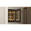 Встраиваемые холодильники для вина оснащаются специальной системой вентиляции: охлаждающая система у них находится в нижней части корпуса спереди. На такие устройства не навешивается мебельный фасад: дверца с затемненным стеклом остается на виду и открывается на достаточно широкий угол для свободного выдвижения деревянных полок.