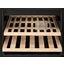 Полки в винных шкафах позволяют размещать бутылки для хранения в горизонтальном положении. Это необходимо, чтобы пробка постоянно смачивалась жидкостью и не пересыхала. Плотно закрытая пробка гарантирует, что внутрь бутылки не проникнет наружный воздух. Кислород, содержащийся в воздухе, может стать причиной ухудшения вкуса вина и даже его скисания. Кроме того, горизонтальное положение позволяет лучше оценить количество осадка. Материал изготовления полок выбирается, исходя из требований, предъявляемых к содержанию коллекции вин. Одним из основных требования является отсутствие или максимальное сокращение вибрации и хорошая фиксация бутылок на месте хранения. Даже если полка выдвигается, бутылки должны оставаться на своем месте. Второе требование исключает применение стеклянных полок, как в обычном холодильнике: на них почти невозможно зафиксировать бутылки.