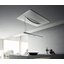 Вытяжка, встраиваемая в потолок, часто устанавливается над кухонным островом в просторной кухне и отличается достаточно высокой мощностью: она может работать как в режиме рециркуляции, так и в режиме отвода, так как воздуховод также скрыт в потолке. Вытяжки могут монтироваться в подвесной потолок либо устанавливаться в специальные многоярусные конструкции из гипсокартона непосредственно во время ремонта кухни. Для управления ими используется пульт ДУ.