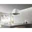 Подвесная конструкция — разновидность островной, она также крепится к потолку над изолированной варочной поверхностью. Ее особенность — тросы, на которых держится основание. Благодаря этому вытяжка кажется невесомой, зачастую напоминает светильник и отлично вписывается в интерьер.
