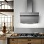 Вытяжки шириной 30 и 45 см будут соответствовать узким варочным панелям на две или три конфорки. Вытяжки шириной 90, 100, 120 см представлены у производителей в меньшем количестве — эти мощные устройства могут монтироваться над большими варочными панелями на пять или шесть зон нагрева, а также над профессиональными и полупрофессиональными плитами и варочными центрами.