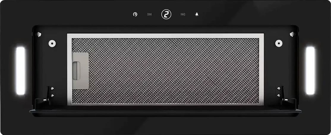 Несмотря на скрытый монтаж, вытяжка демонстрирует высокую производительность и работает с минимальным уровнем шума, что делает её подходящей как для небольших квартир, так и для просторных кухонь в частных домах. Конструкция продумана до мелочей: матовая чёрная поверхность, плавные линии и отсутствие выступающих элементов подчёркивают современный стиль интерьера. Управление интуитивно понятно, а доступ к фильтрам организован так, чтобы их можно было легко снять для очистки или замены, что упрощает регулярное обслуживание.