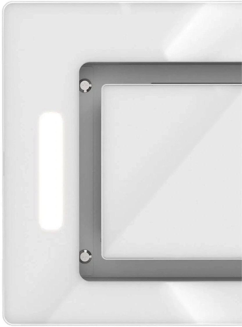 Воздух всасывается по периметру вытяжки через узкие щели. Он собирается в потоки, которые направляются прямо к фильтрам внутри, не рассеивается на кухне. Благодаря этой технологией вытяжку можно сделать компактнее и энергоэффективнее.