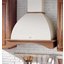 Еще один универсальный цвет — белый, он особенно хорошо подходит для небольших кухонь, так как зрительно способен расширить пространство. На белом фона меньше заметны капли воды и даже частицы жира. В классическом или античном белом выполняются купольные и каминные вытяжки, угловые и встраиваемые модели. Светлые кремовые тона, оттенок слоновой кости — наиболее распространенный вариант для больших вытяжек с окантовкой из натурального дерева.