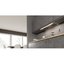 Воздух всасывается по периметру вытяжки через узкие щели. Он собирается в потоки, которые направляются прямо к фильтрам внутри, не рассеивается на кухне. Благодаря этой технологией вытяжку можно сделать компактнее и энергоэффективнее.