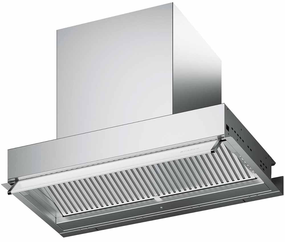 Вытяжка, встраиваемая в потолок, часто устанавливается над кухонным островом в просторной кухне и отличается достаточно высокой мощностью: она может работать как в режиме рециркуляции, так и в режиме отвода, так как воздуховод также скрыт в потолке. Вытяжки могут монтироваться в подвесной потолок либо устанавливаться в специальные многоярусные конструкции из гипсокартона непосредственно во время ремонта кухни. Для управления ими используется пульт ДУ.