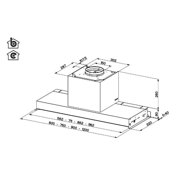 Ширина вытяжки — один из важнейших факторов, влияющих на выбор модели. Именно от правильно подобранной по ширине вытяжки зависит качество очистки воздуха и эффективность ликвидации всех загрязнений — частиц жира, продуктов горения, запахов, водяных паров.