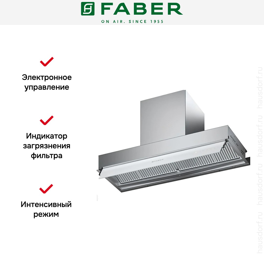 Итальянская компания Faber завоевала мировую известность благодаря своим оригинальным и надежным вытяжкам. История бренда началась в 1955 году: инженер А. Галасси с партнерами основал компанию по производству изделий из пластика — самого модного в то время материала. Оригинальную вытяжку фирма представила в 1958 году — она получила название по наименованию пластмассы Plexiglas.
