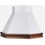 Особенно разнообразен ассортимент классических вытяжек с окантовкой из натурального дерева. Корпус таких моделей выполняется в спокойном белом или бежевом цвете, хорошо сочетающемся с оттенками натурального дерева — мореного дуба, бука, вишни или ореха. Нередко для окантовки используется окрашенное дерево в тон с цветом купола: особенно популярны оттенки ванили, бежевый и кремовый. Иногда дерево специально оставляют неокрашенным, чтобы пользователь мог подобрать оттенок самостоятельно.