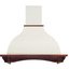 Особенно разнообразен ассортимент классических вытяжек с окантовкой из натурального дерева. Корпус таких моделей выполняется в спокойном белом или бежевом цвете, хорошо сочетающемся с оттенками натурального дерева — мореного дуба, бука, вишни или ореха. Нередко для окантовки используется окрашенное дерево в тон с цветом купола: особенно популярны оттенки ванили, бежевый и кремовый. Иногда дерево специально оставляют неокрашенным, чтобы пользователь мог подобрать оттенок самостоятельно.