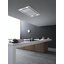 Вытяжка, встраиваемая в потолок, часто устанавливается над кухонным островом в просторной кухне и отличается достаточно высокой мощностью: она может работать как в режиме рециркуляции, так и в режиме отвода, так как воздуховод также скрыт в потолке. Вытяжки могут монтироваться в подвесной потолок либо устанавливаться в специальные многоярусные конструкции из гипсокартона непосредственно во время ремонта кухни. Для управления ими используется пульт ДУ.
