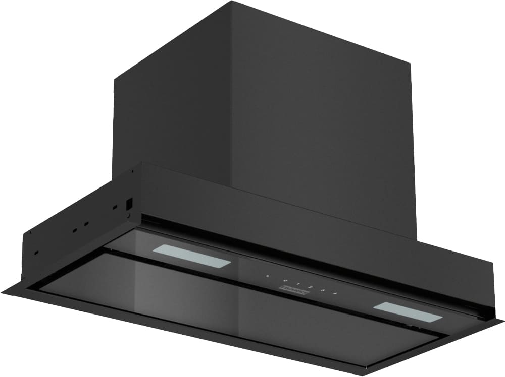 Вытяжка, встраиваемая в потолок, часто устанавливается над кухонным островом в просторной кухне и отличается достаточно высокой мощностью: она может работать как в режиме рециркуляции, так и в режиме отвода, так как воздуховод также скрыт в потолке. Вытяжки могут монтироваться в подвесной потолок либо устанавливаться в специальные многоярусные конструкции из гипсокартона непосредственно во время ремонта кухни. Для управления ими используется пульт ДУ.