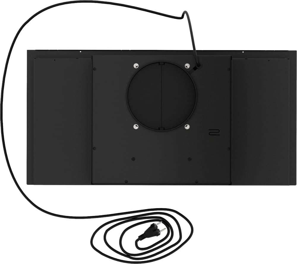 Воздух всасывается по периметру вытяжки через узкие щели. Он собирается в потоки, которые направляются прямо к фильтрам внутри, не рассеивается на кухне. Благодаря этой технологией вытяжку можно сделать компактнее и энергоэффективнее.