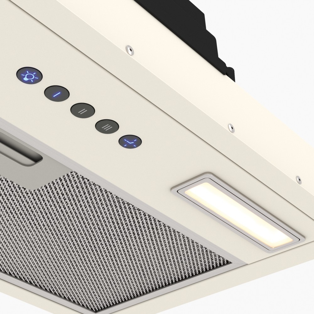 Встраивание вытяжки в шкаф — оптимальный вариант для малогабаритной кухни. Такие модели просты в установке, недороги, практически скрыты от глаз, их не нужно подбирать по внешнему виду, а также чем-то маскировать воздуховод. Уровень шума также снижается благодаря дополнительной звукоизоляции. Встроенные в шкаф модели могут дополняться выдвижной панелью, которая увеличивает площадь забора загрязненного воздуха. Иногда к встраиваемым относят также вытяжки, которые монтируются под подвесной шкаф, хотя их корпус остается на виду.