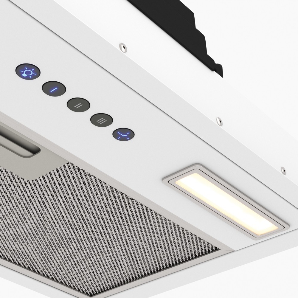 Встраивание вытяжки в шкаф — оптимальный вариант для малогабаритной кухни. Такие модели просты в установке, недороги, практически скрыты от глаз, их не нужно подбирать по внешнему виду, а также чем-то маскировать воздуховод. Уровень шума также снижается благодаря дополнительной звукоизоляции. Встроенные в шкаф модели могут дополняться выдвижной панелью, которая увеличивает площадь забора загрязненного воздуха. Иногда к встраиваемым относят также вытяжки, которые монтируются под подвесной шкаф, хотя их корпус остается на виду.