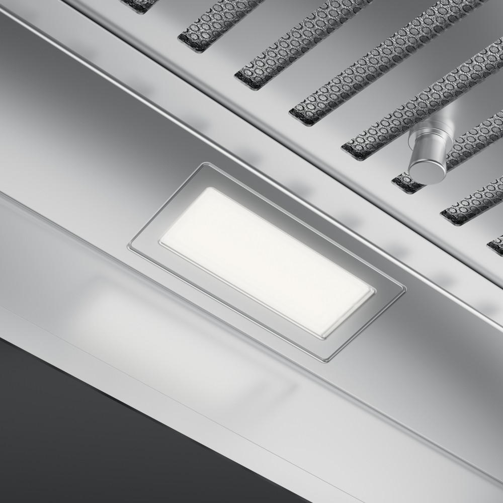 Встроенное освещение — функция, которая присутствует практически во всех современных вытяжках. Центрального освещения часто недостаточно для хорошего обзора рабочей зоны, особенно если над ней установлен подвесной шкаф. Интегрированные в вытяжку лампы позволяют готовить с комфортом, не напрягая зрение, их можно включать независимо от использования самой вытяжки.