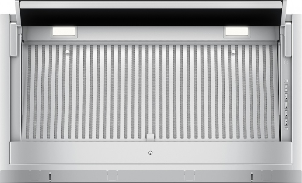 Вытяжка, встраиваемая в потолок, часто устанавливается над кухонным островом в просторной кухне и отличается достаточно высокой мощностью: она может работать как в режиме рециркуляции, так и в режиме отвода, так как воздуховод также скрыт в потолке. Вытяжки могут монтироваться в подвесной потолок либо устанавливаться в специальные многоярусные конструкции из гипсокартона непосредственно во время ремонта кухни. Для управления ими используется пульт ДУ.