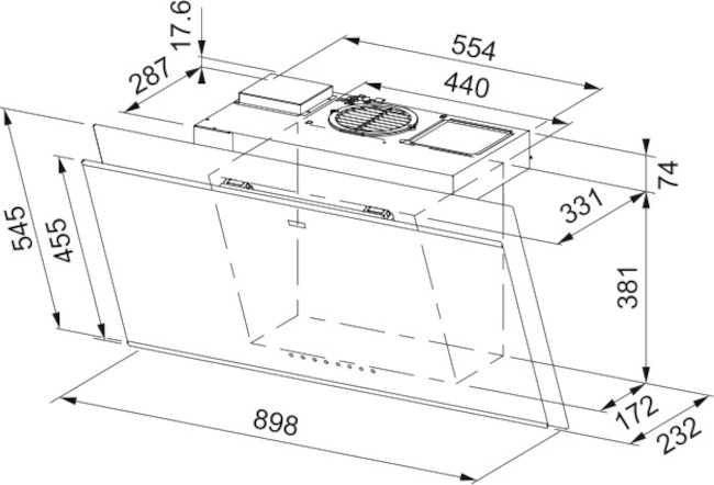 Вытяжки с наклонной фронтальной панелью позволяют освободить пространство над варочной панелью, при этом мощность забора воздуха не страдает от конфигурации модели. Такими вытяжками удобно управлять, так как кнопки обычно находятся спереди, доступ к ним максимально облегчен. Зачастую есть всасывание по периметру.