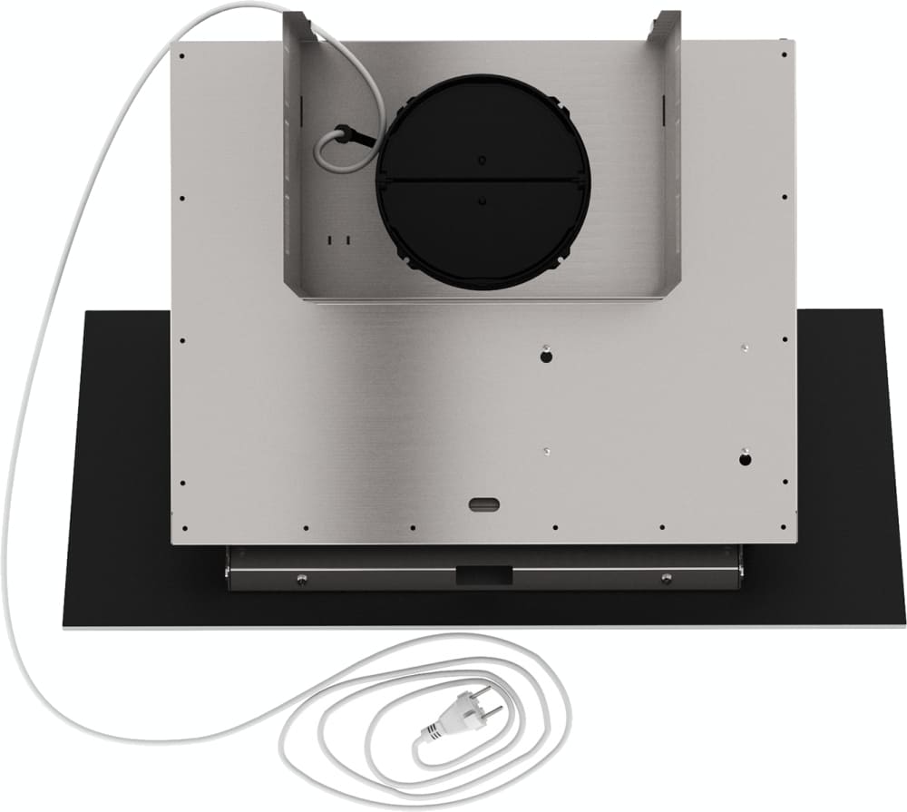 Воздух всасывается по периметру вытяжки через узкие щели. Он собирается в потоки, которые направляются прямо к фильтрам внутри, не рассеивается на кухне. Благодаря этой технологией вытяжку можно сделать компактнее и энергоэффективнее.