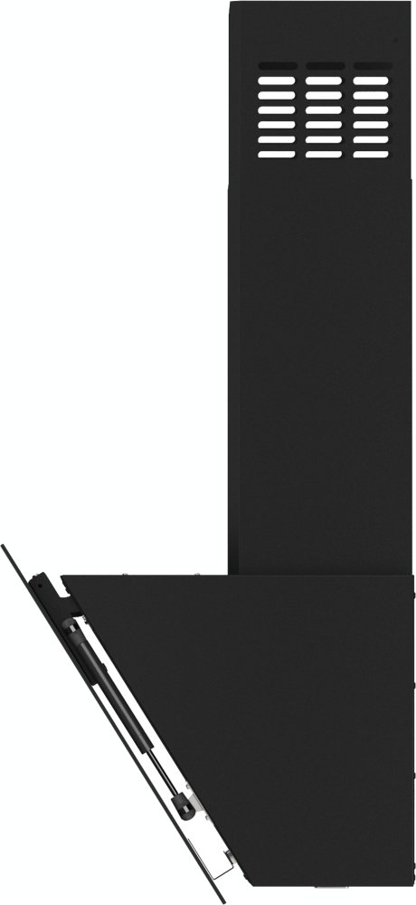 Воздух всасывается по периметру вытяжки через узкие щели. Он собирается в потоки, которые направляются прямо к фильтрам внутри, не рассеивается на кухне. Благодаря этой технологией вытяжку можно сделать компактнее и энергоэффективнее.