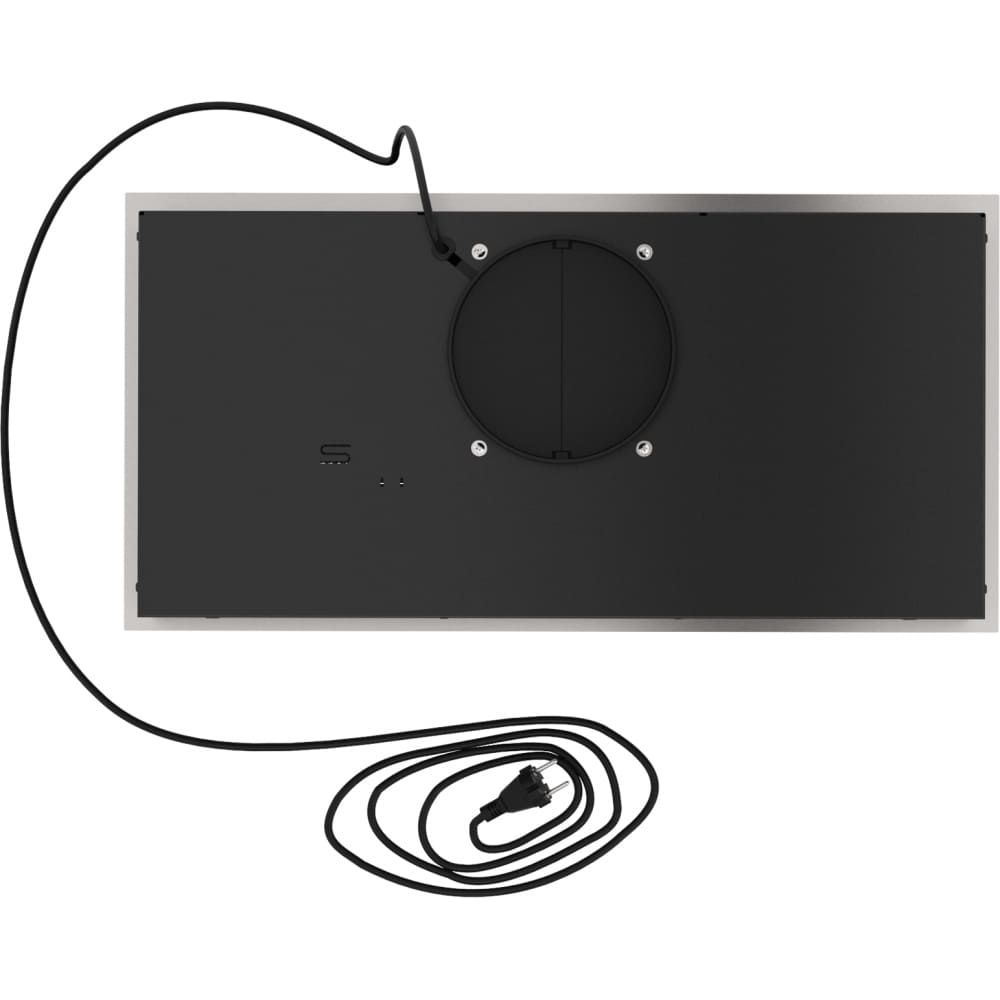 Воздух всасывается по периметру вытяжки через узкие щели. Он собирается в потоки, которые направляются прямо к фильтрам внутри, не рассеивается на кухне. Благодаря этой технологией вытяжку можно сделать компактнее и энергоэффективнее.