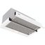 Можно выделить два основных вида вытяжек с выдвижной панелью. В вытяжках, встраиваемых в подвесной шкаф, выдвижная панель необходима, так как размеры таких устройств определяются размерами самого шкафа. В закрытом состоянии глубина вытяжки может быть меньше глубины варочной поверхности. Телескопическая выдвижная панель, которая устанавливается преимущественно в устройствах, работающих в режиме отвода, гарантирует полный захват воздуха, загрязненного каплями жира, частицами сажи, испарениями. Панель можно выдвинуть как нажатием на кнопку, так и потянув за ее переднюю часть. В некоторых моделях при подобном выдвижении одновременно включается подсветка. Когда же панель убрана, вытяжка становится практически незаметной — такой вариант лучше всего подходит для небольшой кухни.