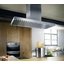 Островные модели устанавливаются на потолок над кухонным островом, которым часто оснащаются просторные кухни-столовые в современных квартирах. Подключение таких приборов к вентиляции требует больших трудозатрат, так что часть из них работает только в режиме рециркуляции. Для работы в режиме отвода воздуховод должен располагаться вертикально, что позволяет создавать оригинальные конструкции, которые станут заметной деталью в любой кухне.