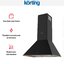 Угловые вытяжки — разновидность купольных. В соответствии со своим названием эти устройства крепятся над угловыми варочными поверхностями, удачно занимая свободное место в углу помещения.