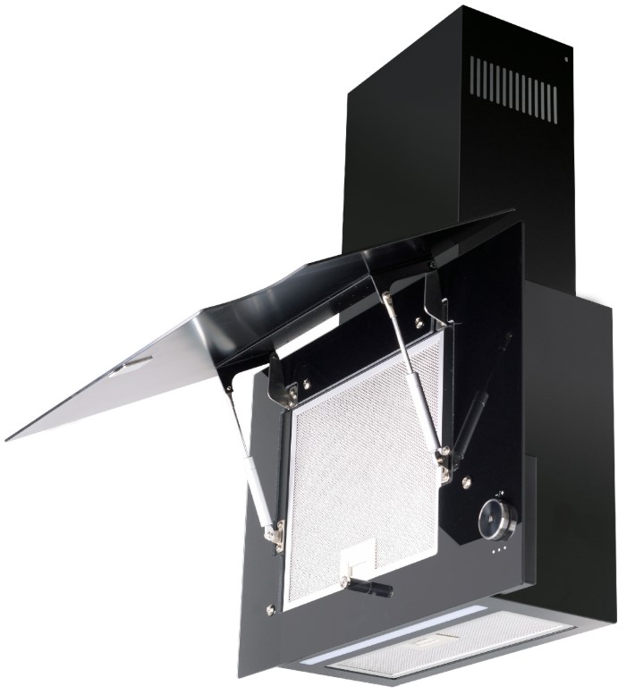 Наклонные модели — еще один вариант для небольшой кухни. Они размещаются на стене, но при высокой производительности не требуют много места. Их особенностью считается пониженный уровень шума и управление при помощи пульта ДУ. Эта категория вытяжек отличается большим разнообразием размеров, дизайна, цветов.