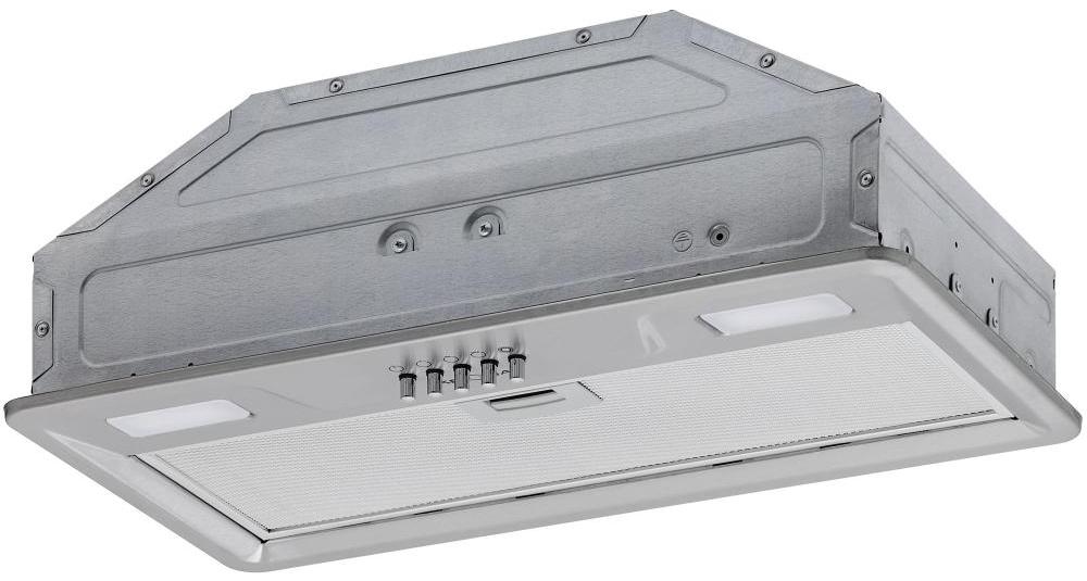 Встраивание вытяжки в шкаф — оптимальный вариант для малогабаритной кухни. Такие модели просты в установке, недороги, практически скрыты от глаз, их не нужно подбирать по внешнему виду, а также чем-то маскировать воздуховод. Уровень шума также снижается благодаря дополнительной звукоизоляции. Встроенные в шкаф модели могут дополняться выдвижной панелью, которая увеличивает площадь забора загрязненного воздуха. Иногда к встраиваемым относят также вытяжки, которые монтируются под подвесной шкаф, хотя их корпус остается на виду.