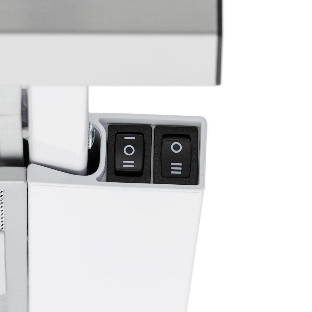 Встраиваемые и простые настенные модели, как правило, оснащаются боковой панелью управления, состоящей из нескольких кнопок. Их количество зависит от числа скоростей, наличия интенсивного режима и встроенного освещения. Боковое расположение панели управления делает вытяжку еще более незаметной.