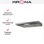 Вытяжка устанавливается под подвесной шкаф, легко помещается даже в компактной комнате. Рекомендованная площадь кухни — 7 кв. м. Цвет корпуса — серебристый металлик.