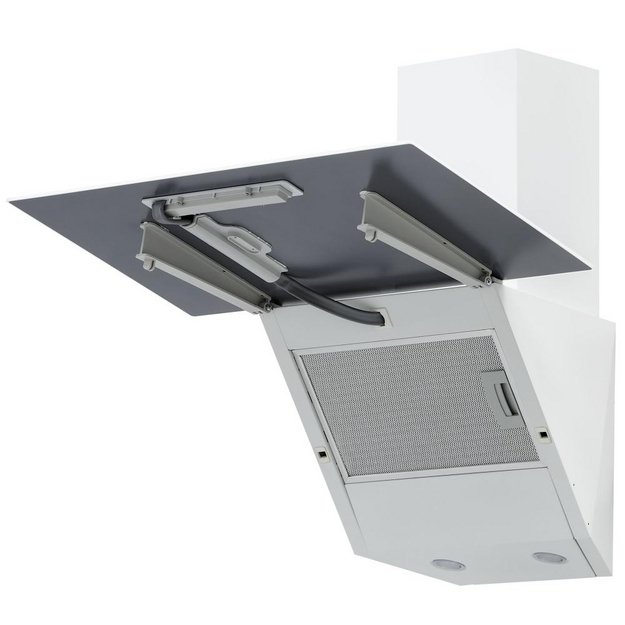 Наклонные модели — еще один вариант для небольшой кухни. Они размещаются на стене, но при высокой производительности не требуют много места. Их особенностью считается пониженный уровень шума и управление при помощи пульта ДУ. Эта категория вытяжек отличается большим разнообразием размеров, дизайна, цветов.