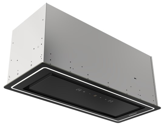 Вытяжка, встраиваемая в потолок, часто устанавливается над кухонным островом в просторной кухне и отличается достаточно высокой мощностью: она может работать как в режиме рециркуляции, так и в режиме отвода, так как воздуховод также скрыт в потолке. Вытяжки могут монтироваться в подвесной потолок либо устанавливаться в специальные многоярусные конструкции из гипсокартона непосредственно во время ремонта кухни. Для управления ими используется пульт ДУ.