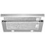 Можно выделить два основных вида вытяжек с выдвижной панелью. В вытяжках, встраиваемых в подвесной шкаф, выдвижная панель необходима, так как размеры таких устройств определяются размерами самого шкафа. В закрытом состоянии глубина вытяжки может быть меньше глубины варочной поверхности. Телескопическая выдвижная панель, которая устанавливается преимущественно в устройствах, работающих в режиме отвода, гарантирует полный захват воздуха, загрязненного каплями жира, частицами сажи, испарениями. Панель можно выдвинуть как нажатием на кнопку, так и потянув за ее переднюю часть. В некоторых моделях при подобном выдвижении одновременно включается подсветка. Когда же панель убрана, вытяжка становится практически незаметной — такой вариант лучше всего подходит для небольшой кухни.