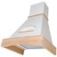 Особенно разнообразен ассортимент классических вытяжек с окантовкой из натурального дерева. Корпус таких моделей выполняется в спокойном белом или бежевом цвете, хорошо сочетающемся с оттенками натурального дерева — мореного дуба, бука, вишни или ореха. Нередко для окантовки используется окрашенное дерево в тон с цветом купола: особенно популярны оттенки ванили, бежевый и кремовый. Иногда дерево специально оставляют неокрашенным, чтобы пользователь мог подобрать оттенок самостоятельно.